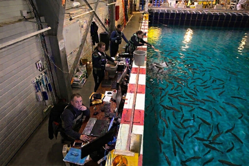 Le LHEEA (Laboratoire de recherche en hydrodynamique, énergétique et environnement atmosphérique) pilote les travaux liés à l’observation et à la modélisation des déplacements de truites en environnement contrôlé. Grâce à son bassin de génie océanique, les équipes étudient les interactions entre individus et les effets de sillage générés par leurs déplacements, afin d’identifier des configurations propices à la production d’énergie.