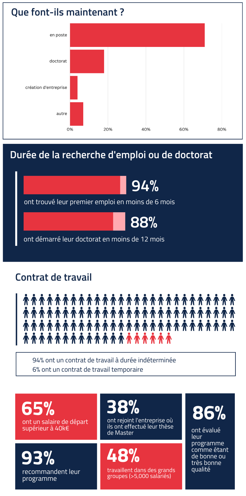 • 80% ont obtenu leur premier emploi en moins de 3 mois